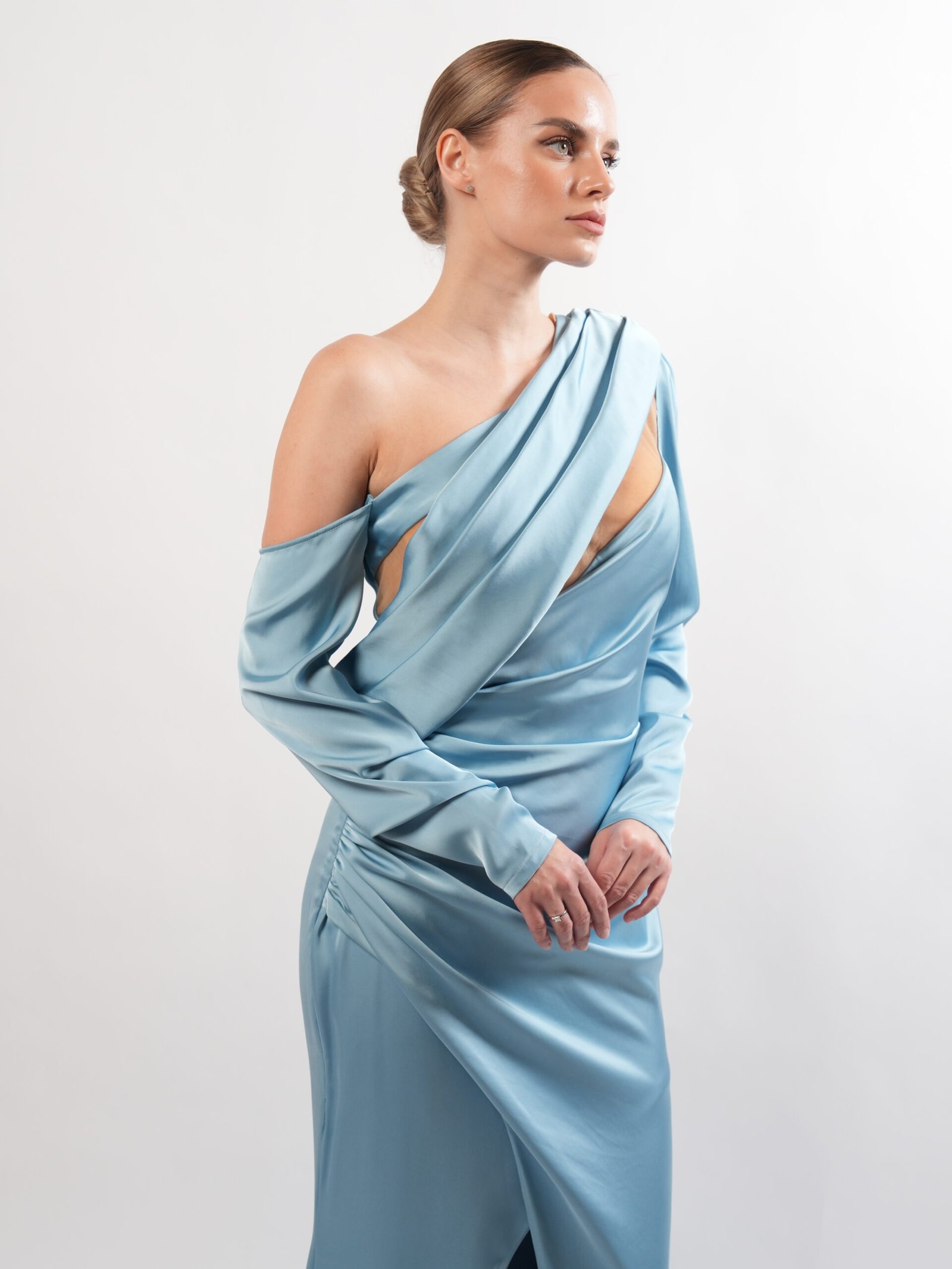 The HOPE Satin Dress is an elegant piece crafted from smooth, lustrous satin fabric that delivers a refined and polished look. Designed with a timeless silhouette, this dress is suitable for evening events, formal occasions, or special gatherings where understated elegance is key.