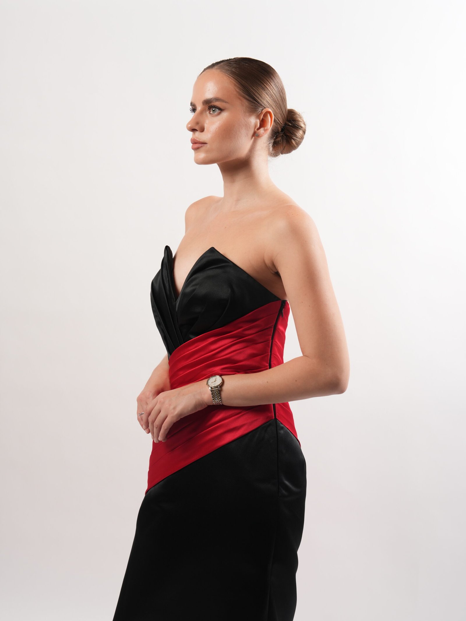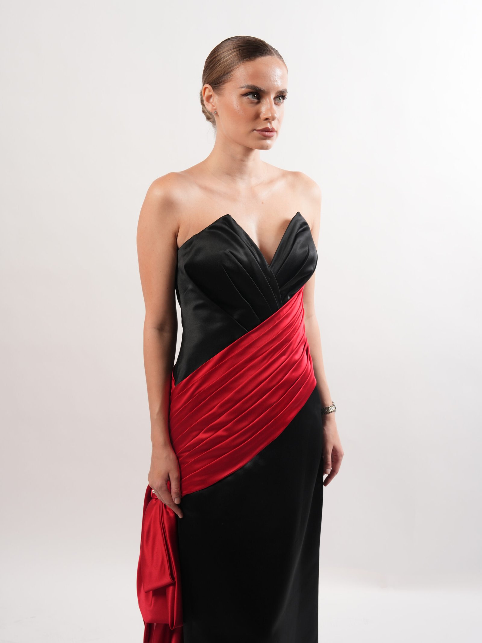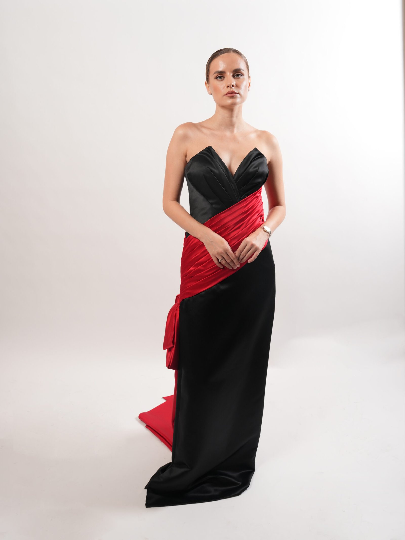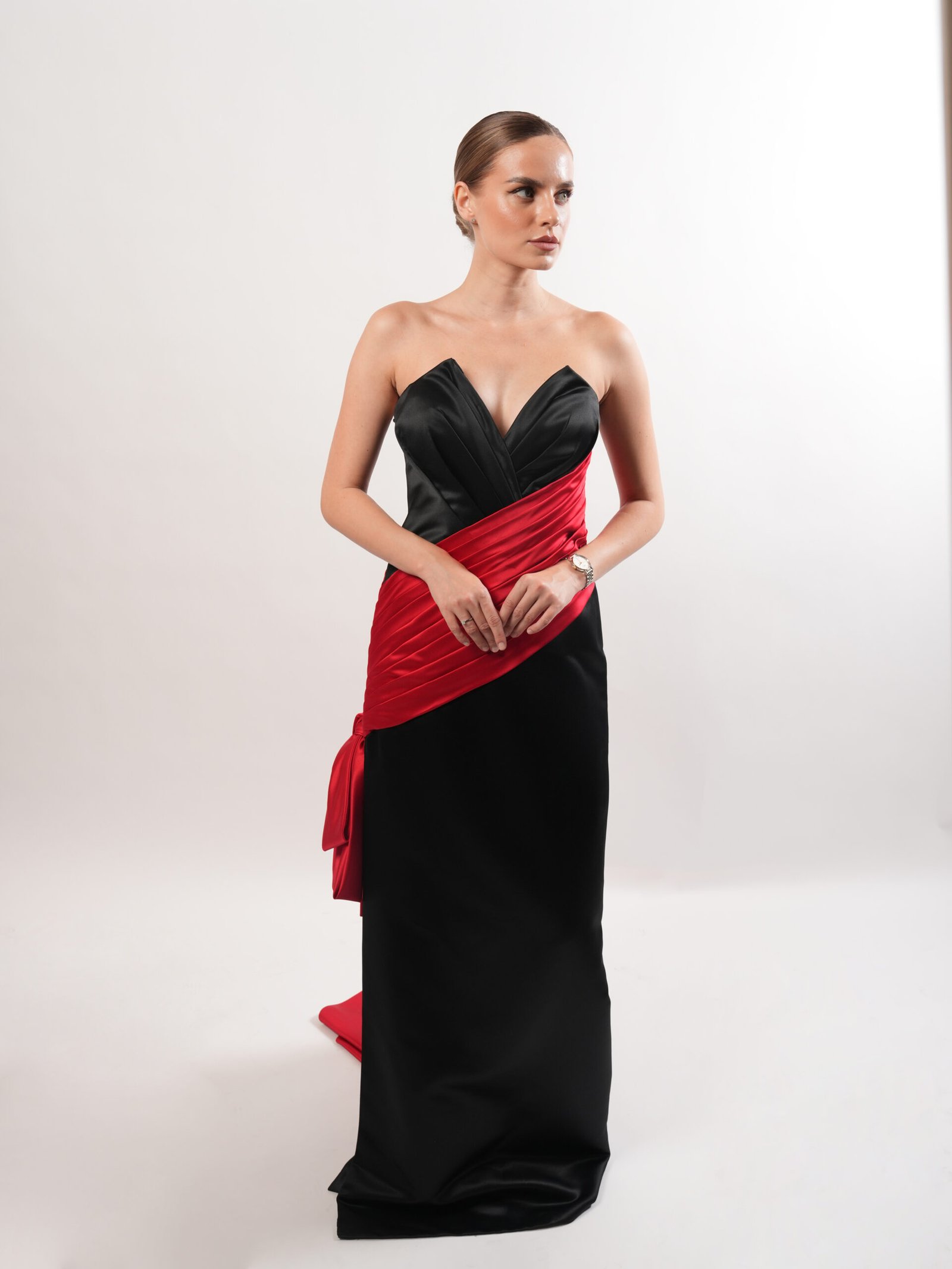The ZGEE 13 is a strapless evening gown featuring a refined silhouette and an elegant side bow detail that adds a feminine and stylish accent. Designed to make a statement, this gown combines classic eveningwear structure with a modern decorative touch, making it suitable for formal and special occasions.